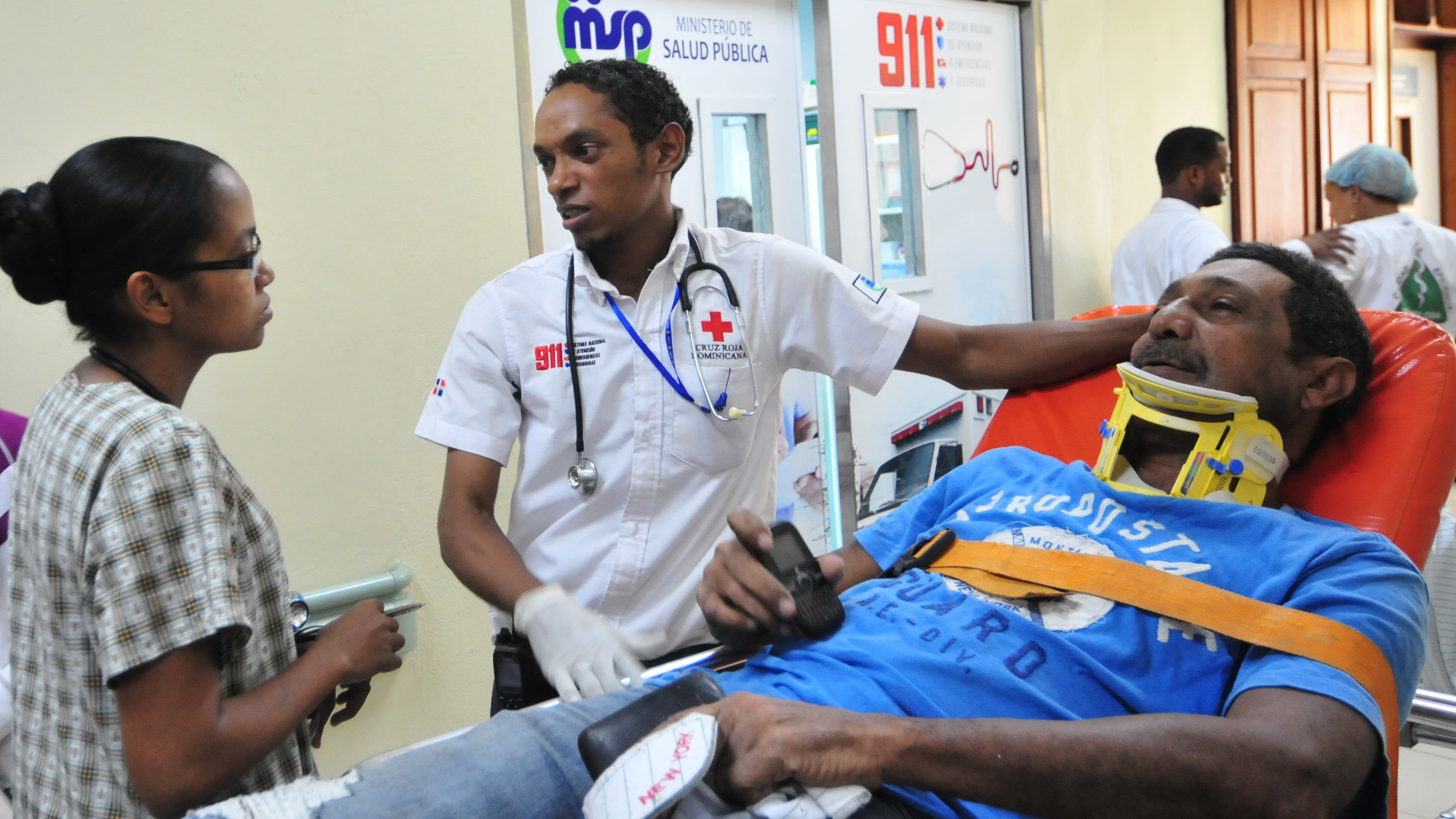 A su llegada al Hospital Regional Dr. Marcelino Vélez Santana, en Herrera, seguido fue atendido por personal médico que le estaba esperando para atenderle.