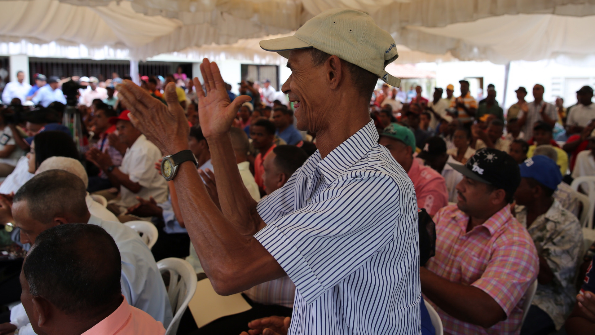 Productores presentes en el encuentro con el presidente Danilo Medina en la comunidad de Las Lagunas, en Sambrano Abajo, Cotui, provincia Sánchez Ramírez. Foto: Luis Ruiz Tito/Presidencia República Dominicana Nota de prensa: presidencia.gob.do/noticias/danilo-medina-queremos-que-su... Video YouTube: www.youtube.com/watch?v=6eUFLmhmUt0