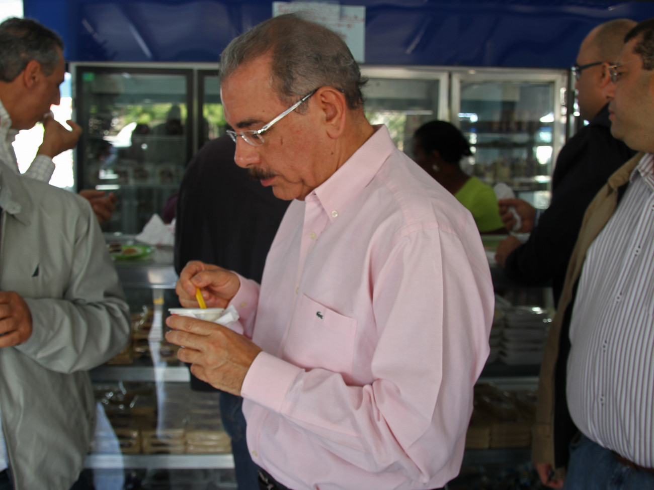 El presidente Medina disfruta un dulce criollo en el parador Las Marías.