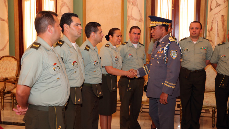 Oficiales policiales de Colombia son recibidos por el presidente Danilo Medina