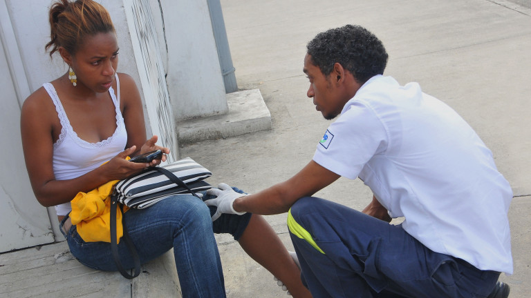 Personal del 911 vistos mientras se preparan para trasladar la paciente al hospital.
