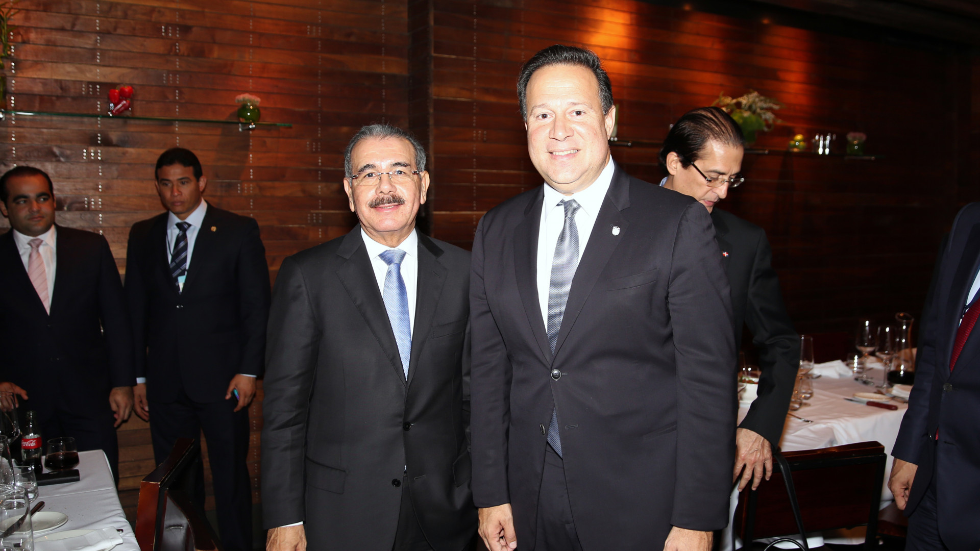 Encuentro del presidente Danilo Medina con su homólogo de Panamá, Juan Carlos Varela, con quien coincidió en el lugar donde ambos almorzaron, tras concluir el evento efectuado entre Jefes de Estado y líderes mundiales con el ex presidente norteamericano Bill Clinton.