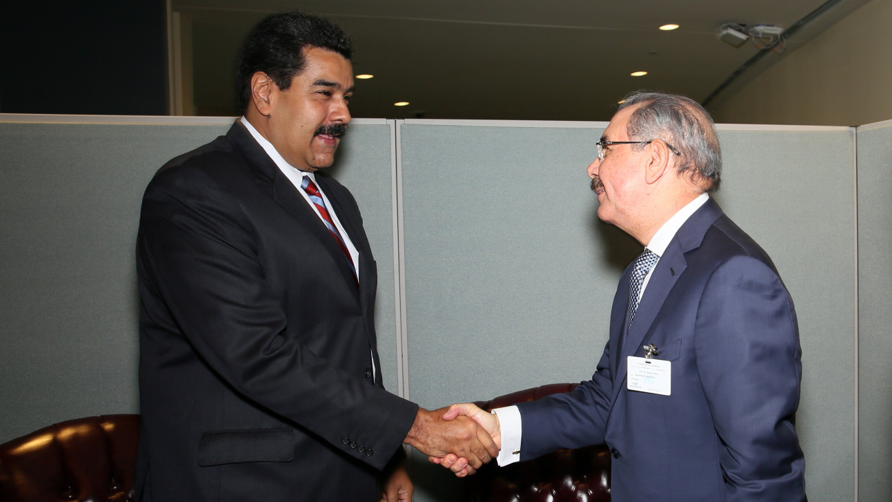 Encuentro del presidente Danilo Medina con su homólogo venezolano Nicolás Maduro, en la sede de la ONU, en Nueva York, Estados Unidos, donde ambos acuden para la 69 asamblea de la Organización de las Naciones Unidas (ONU), junto a más de 120 mandatarios y líderes mundiales.