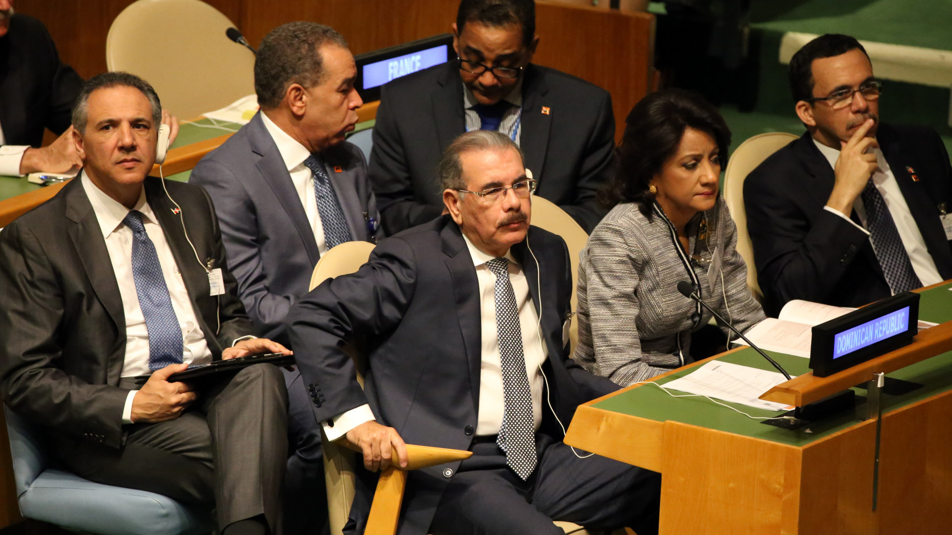 Presidente Danilo Medina Sánchez, su esposa, Cándida Montilla de Medina y ministros, Andrés Navarro y José Ramón Peralta, en cumbre sobre el clima celebrada en la sede de la Organización de Naciones Unidas (ONU), en Nueva York, Estados Unidos, con la participación de más de 120 Jefes de Estados y líderes mundiales.