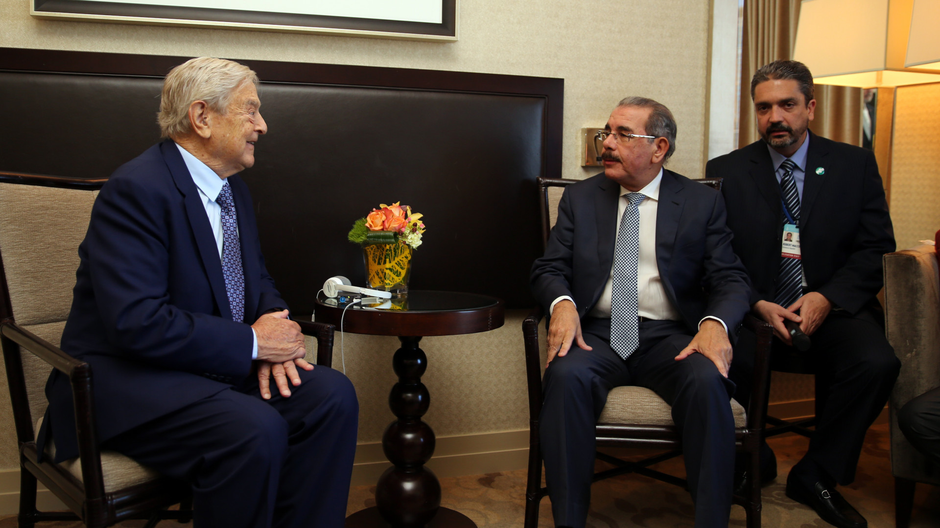 Presidente de la República, Danilo Medina y señor George Soros, financista e inversionista estadounidense, durante encuentro efectuado en el marco de las actividades de su viaje a Estados Unidos, por actual Asamblea General de la Organización de las Naciones Unidas (ONU). Foto: Luis Ruiz Tito/Presidencia República Dominicana Nota de prensa: presidencia.gob.do/noticias/danilo-medina-recibe-al-finan...