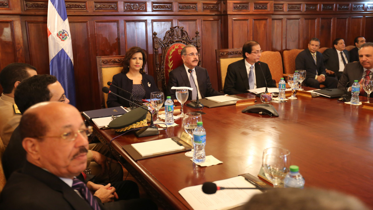 El presidente de la República, Danilo Medina y la vicepresidenta Margarita Cedeño, al presidir sesión con integrantes del Consejo de Ministros y funcionarios del Gobierno, para conocer el Presupuesto General de la Nación que regirá a partir de enero del 2015, en acto efectuado en el Palacio Nacional Foto: Ángel Álvarez Rodríguez/Presidencia República Dominicana Nota de prensa: www.presidencia.gov.do/noticias/un-presupuesto-responsabl...
