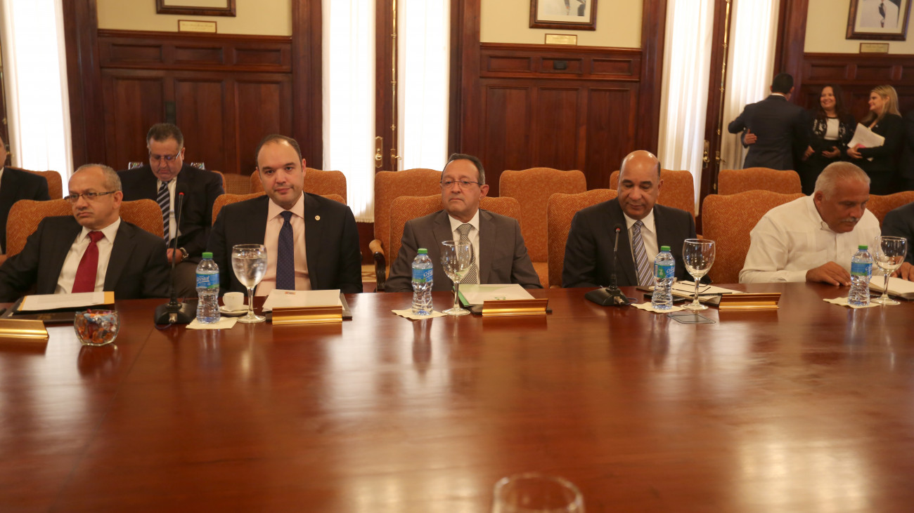 Integrantes del Consejo de Ministros y funcionarios del Gobierno, presentes durante sesión para conocer el Presupuesto General de la Nación que regirá a partir de enero del 2015, en acto efectuado en el Palacio Nacional