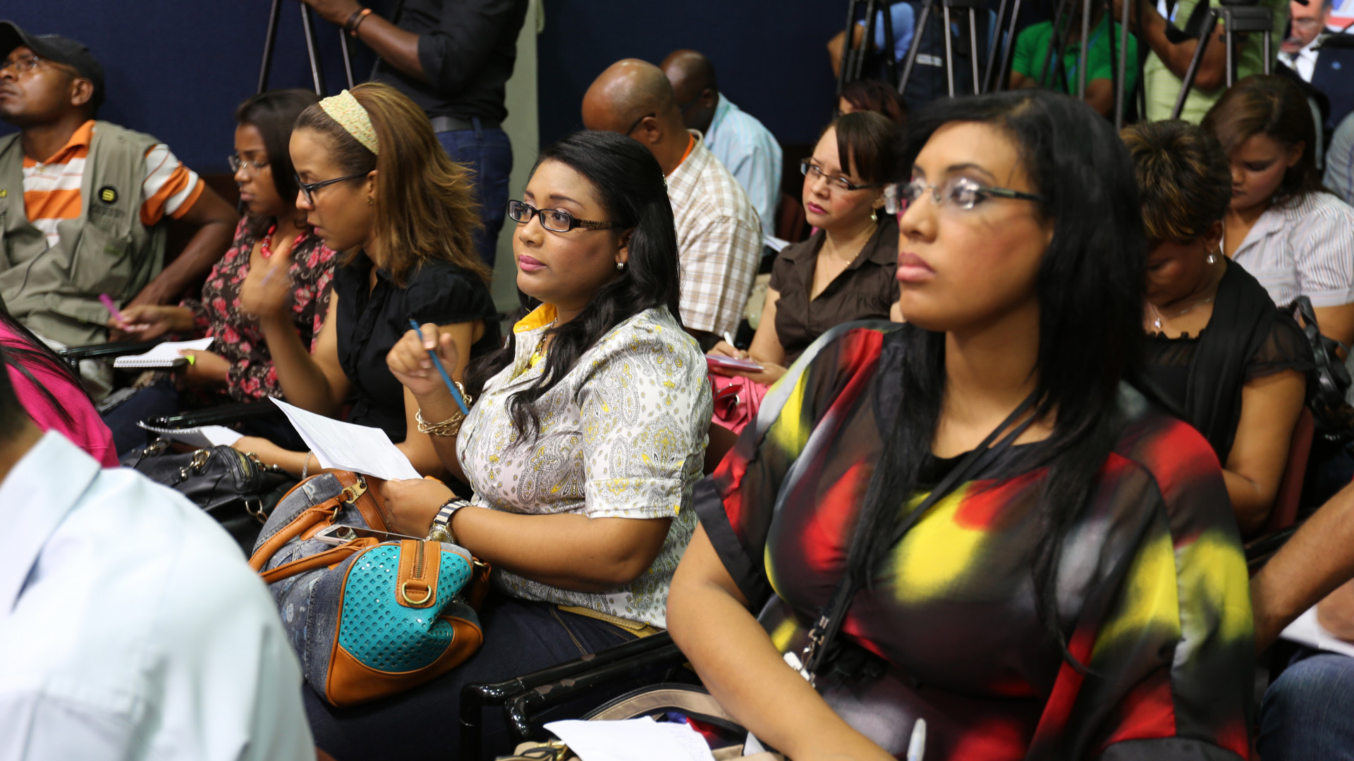Periodistas presentes durante conferencia de prensa con integrantes del Consejo de Ministros y funcionarios del Gobierno, sobre Presupuesto Nacional 2015, efectuada en el Salón Orlando Martínez, del Palacio Nacional.