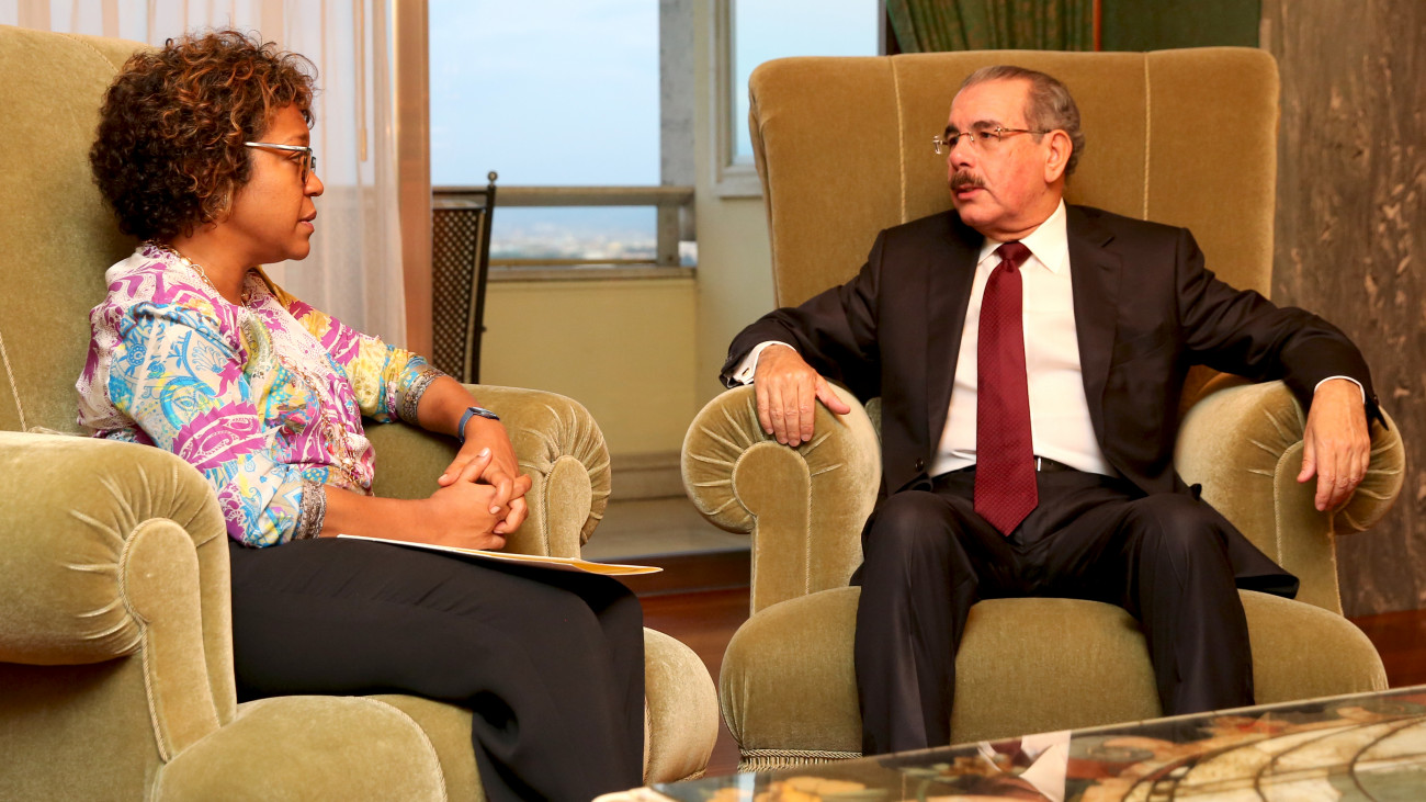 Presidente Danilo Medina y señora Josefina Stubbs, vicepresidenta del FIDA, durante reunión en la sede de la institución.