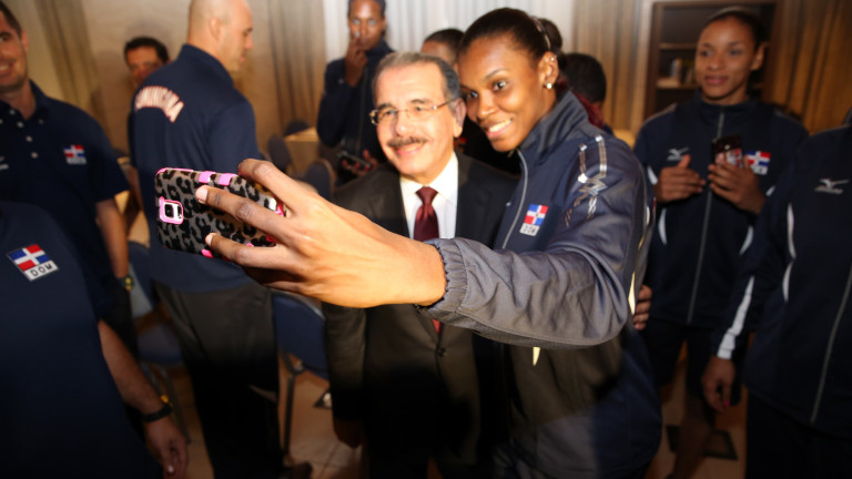 Durante el emotivo encuentro el Mandatario, las atletas y entrenadores, se tomaron numerosas fotografías, incluyendo el divertido "selfie". Foto: Luis Ruiz Tito/Presidencia República Dominicana Nota de prensa: presidencia.gob.do/noticias/danilo-medina-en-felicitacion...