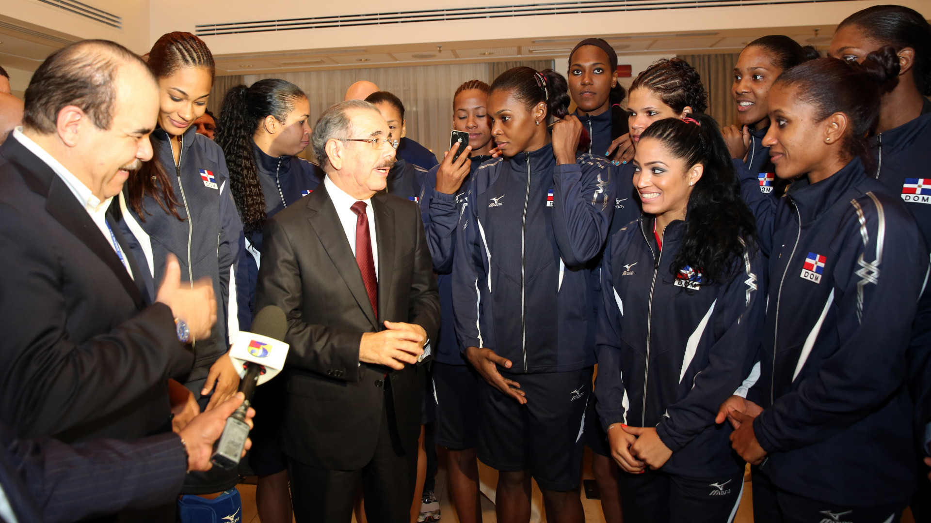 Danilo Medina en felicitación sorpresa a Selección Voleibol Femenino en Italia