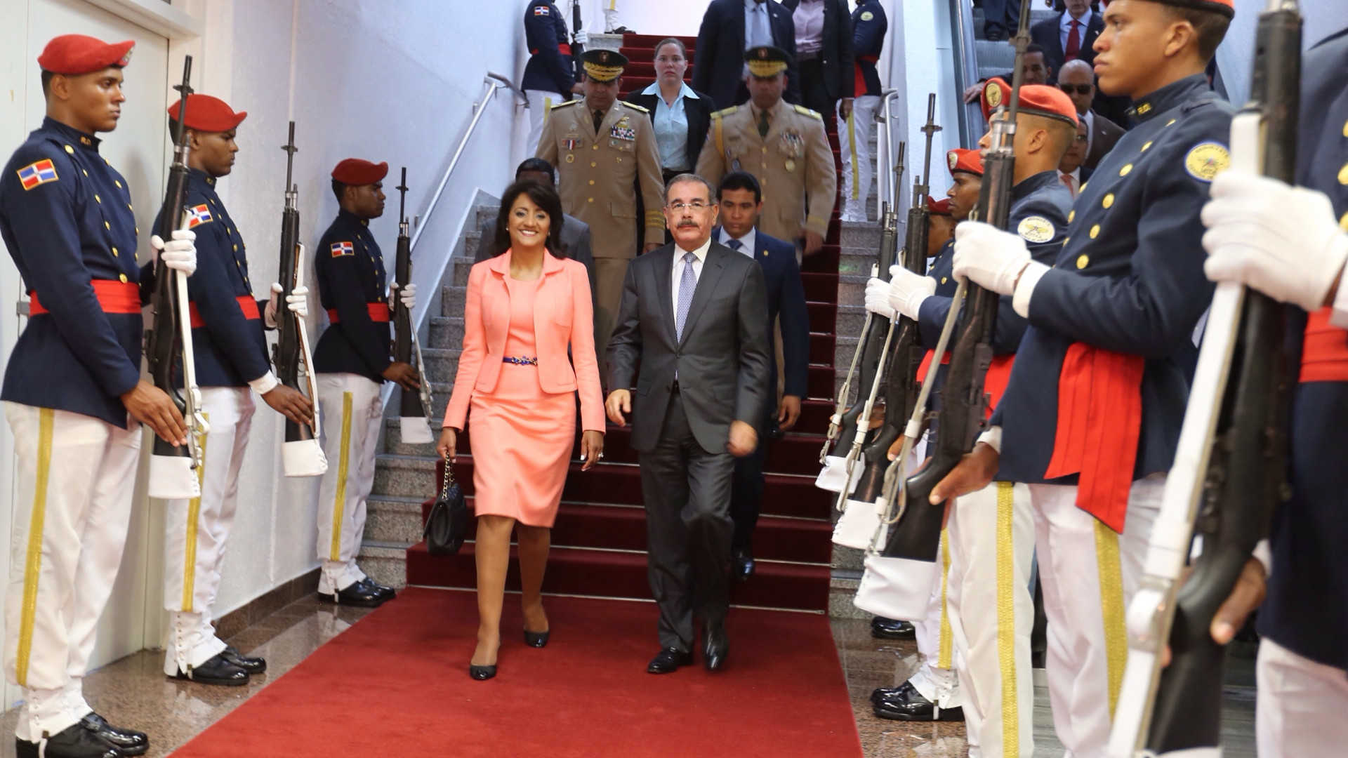 Llegada del presidente Danilo Medina al país, quien fue recibido por su esposa, la primera dama Cándida Montilla de Medina, luego de participar como orador invitado en el XXIV Período de Sesiones del Comité de Agricultura de la FAO, en Roma, Italia.