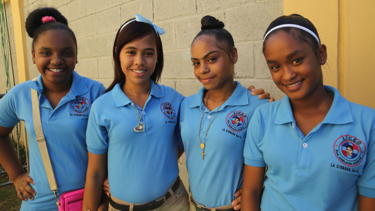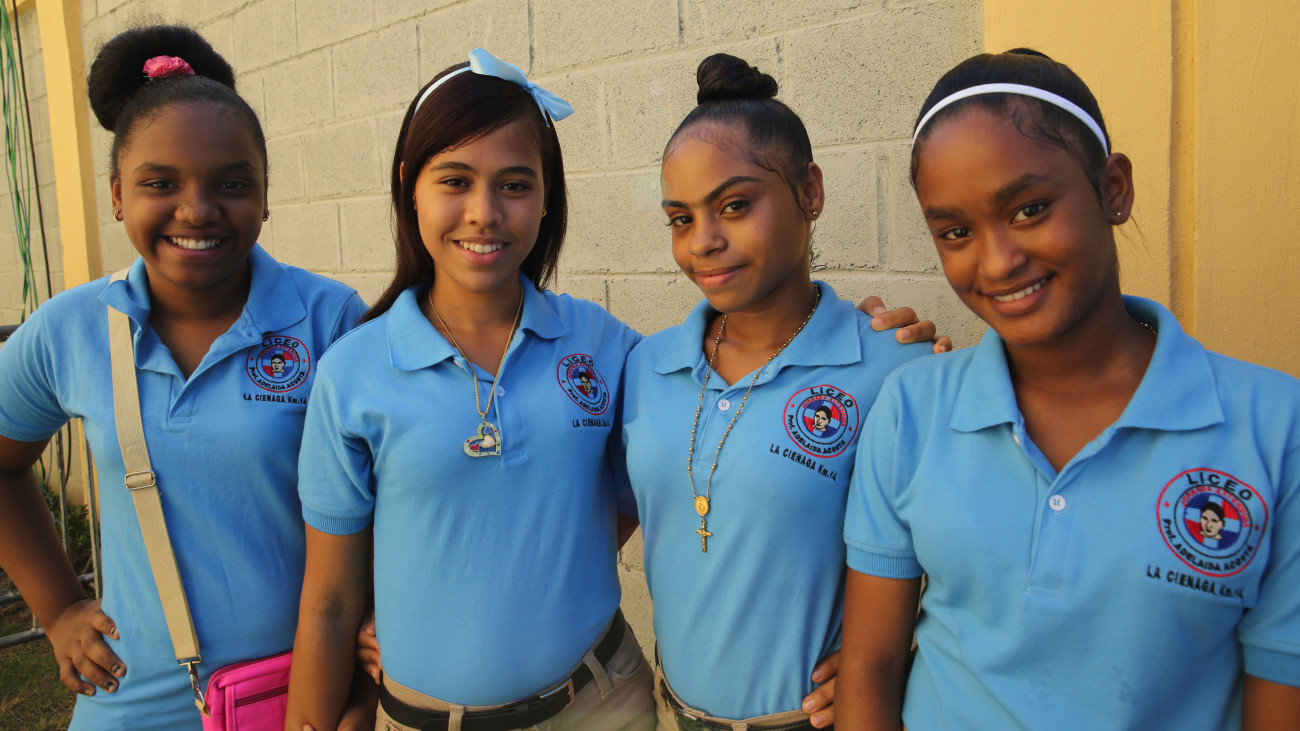 Estudiantes muestran el júbilo que sienten al recibir los ocho modernos y equipados planteles escolares.