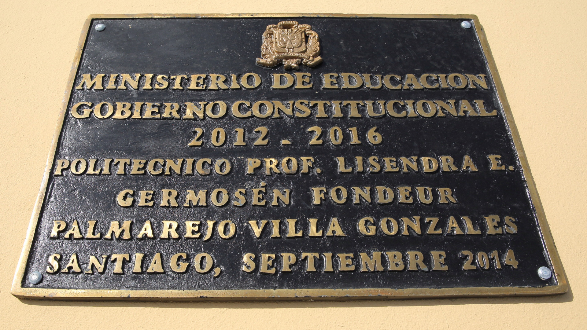 Tarja inaugural con la cual quedó identificado el nuevo plantel escolar entregado por el presidente Danilo Medina.