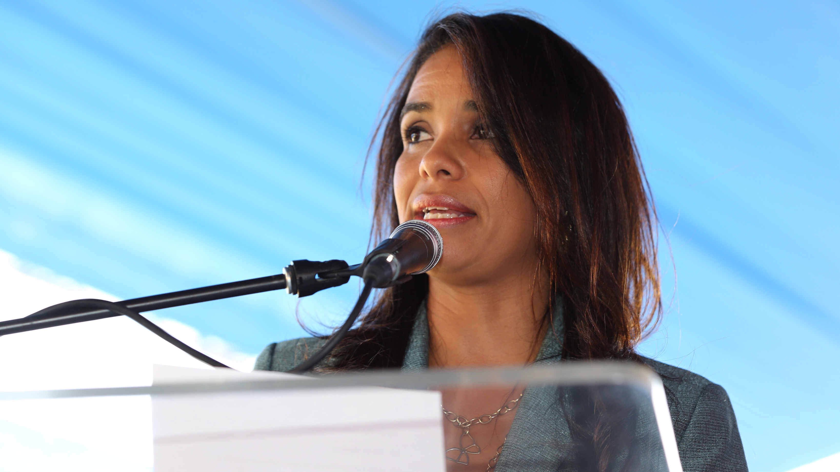 Claudia de los Santos, viceministra de Obras Públicas, durante su discurso.