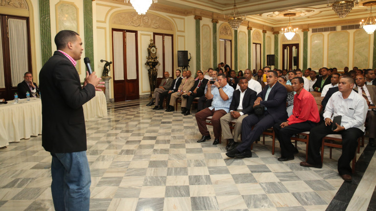 Moisés González, director de Distribución de Gestión Comunicacional de la Presidencia, mientras se dirige a los presentes.