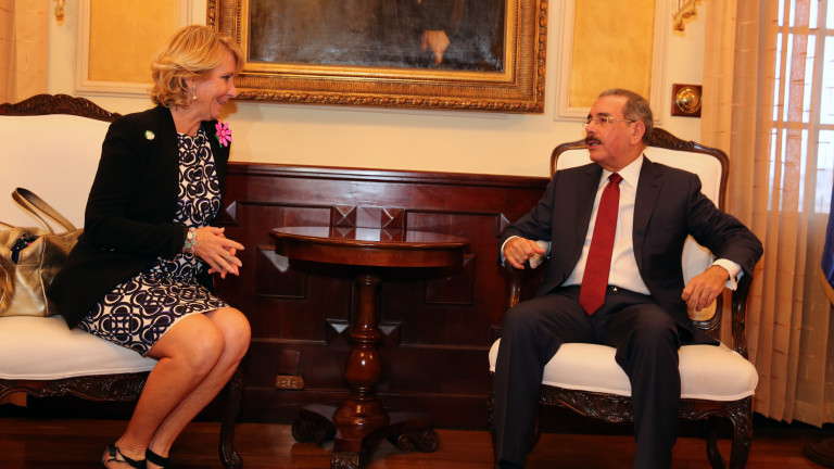 Expresidenta de la Comunidad de Madrid visita al presidente Danilo Medina