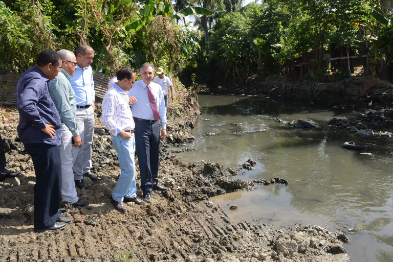 El ministro Peralta supervisando los trabajos de canalización y acondicionamiento de la cañada El Riíto, lo que evitará las inundaciones y la transmisión de enfermedades en un gran sector de la ciudad.
