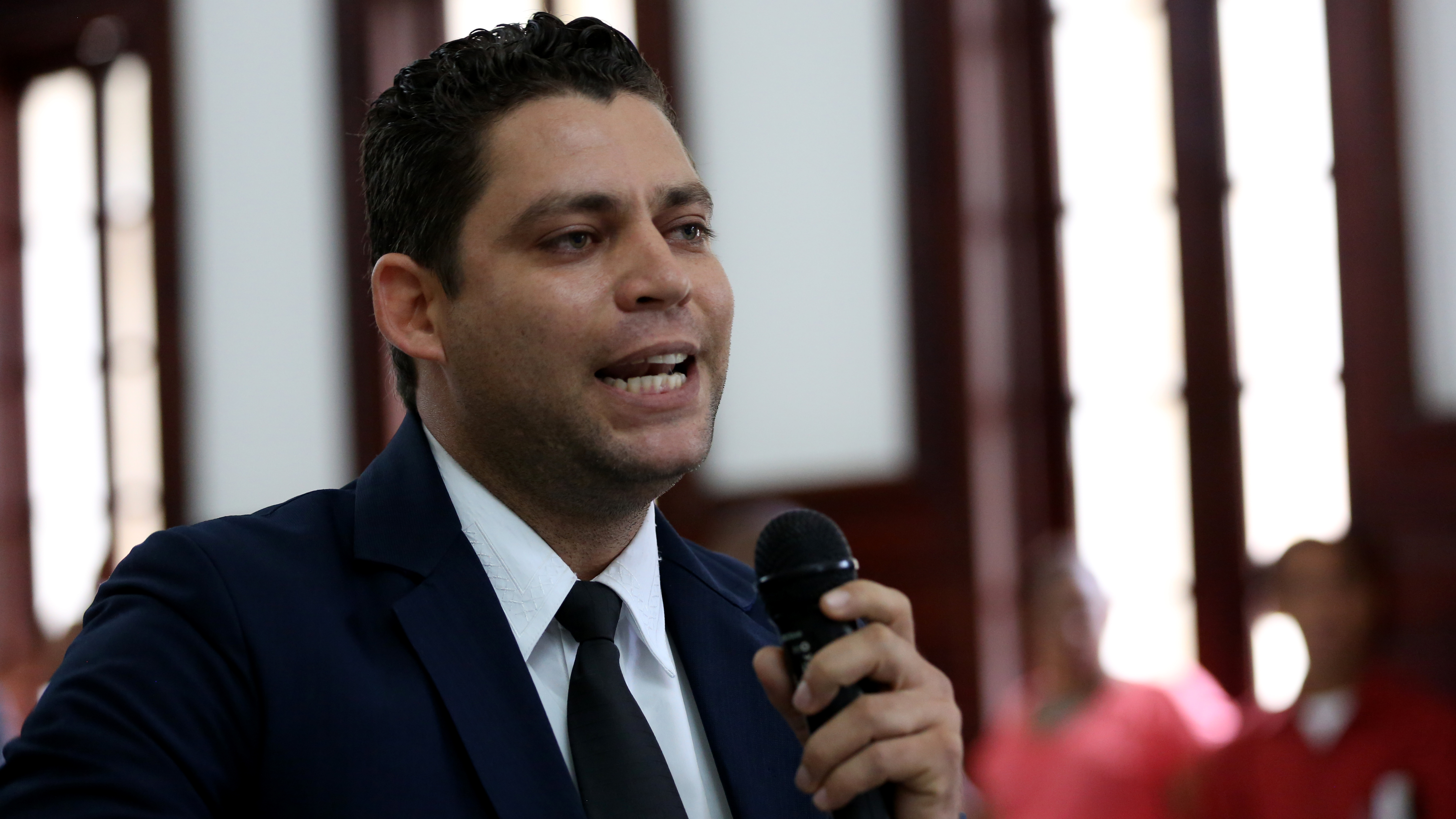 Un representante de uno de los sectores que convergen en Santiago, realiza una pregunta sobre los avances del Plan Nacional de Regularización de Extranjeros en condición migratoria irregular.