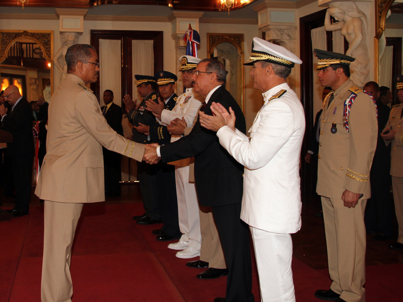 Presidente Danilo Medina recibe saludos de oficiales militares y policiales