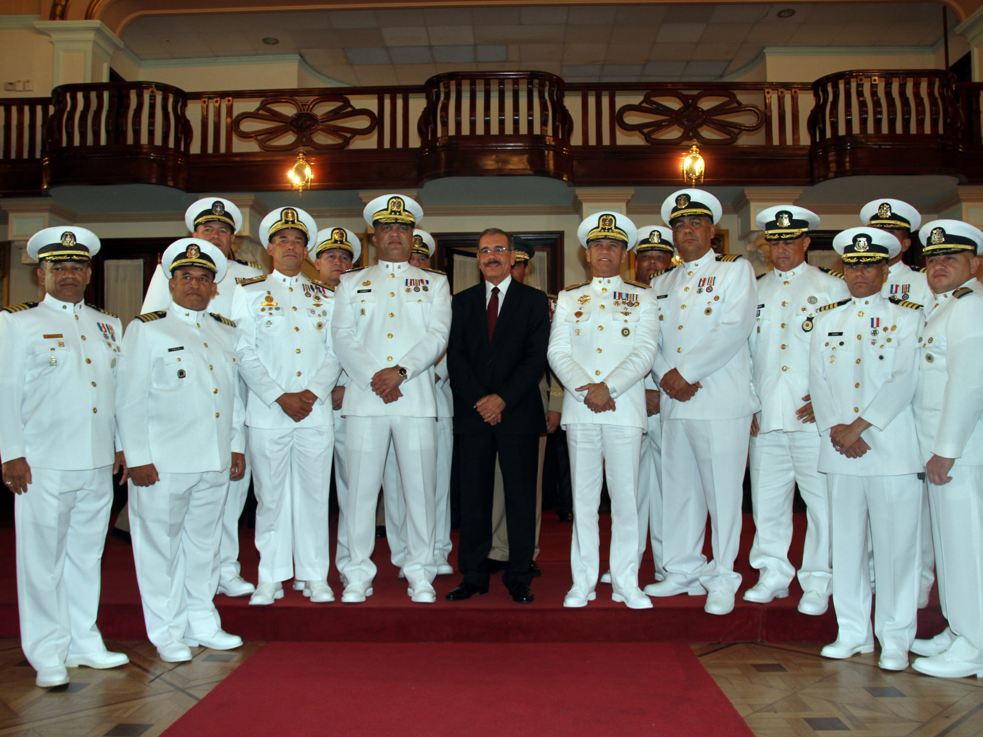 El presidente de la República, Danilo Medina, y el ministro de las Fuerzas Armadas, Sigfrido Pared Pérez, e integrantes de la Marina de Guerra.