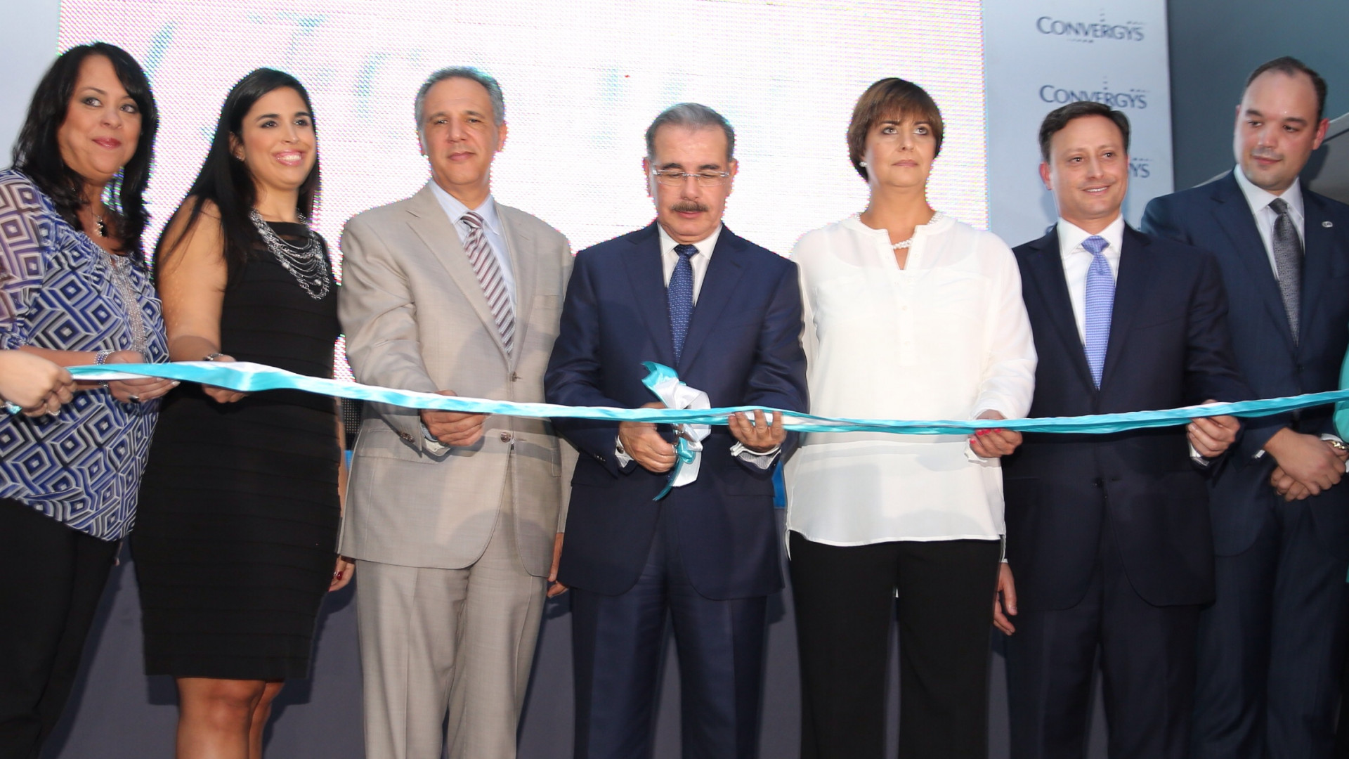 El presidente Danilo Medina, junto a varios ministros del Gobierno y ejecutivos la empresa Convergys Corporation (NYSE: CVG), realiza el corte de cinta para dejar inaugurada las nuevas instalaciones. Foto: Ángel Álvarez Rodríguez/Presidencia República Dominicana Nota de prensa: www.presidencia.gob.do/noticias/convergys-crea-500-empleo...
