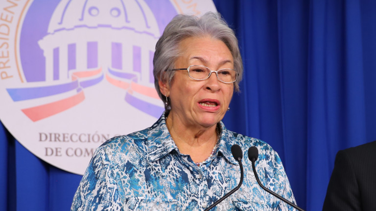 Altagracia Guzmán Marcelino, directora del Seguro Nacional de Salud, (Senasa), responde preguntas de periodistas de distintos medios que asistieron a la rueda de prensa, convocada luego de presentarle el informe al presidente Danilo Medina.
