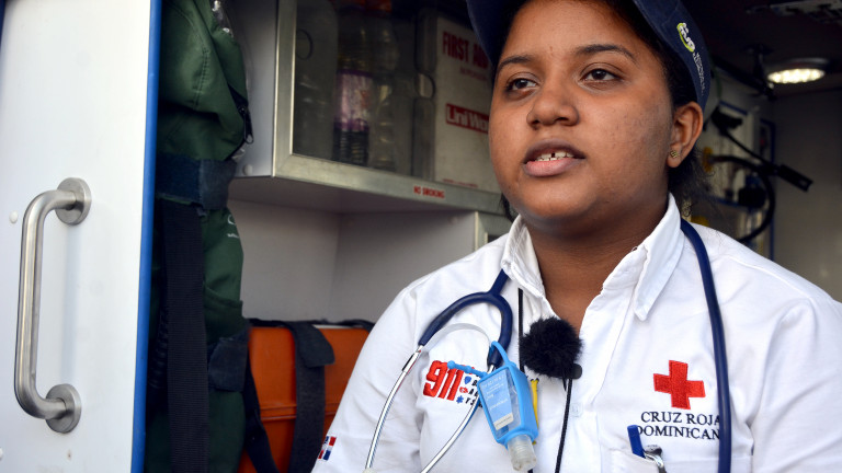 Paramédica Emperatriz Cruz del Puesto de Socorro 911, ubicado en el km. 16 de la Autopista Duarte, refiere el hecho. Foto: Presidencia República Dominicana www.youtube.com/watch?v=N6UCJkKkvCk