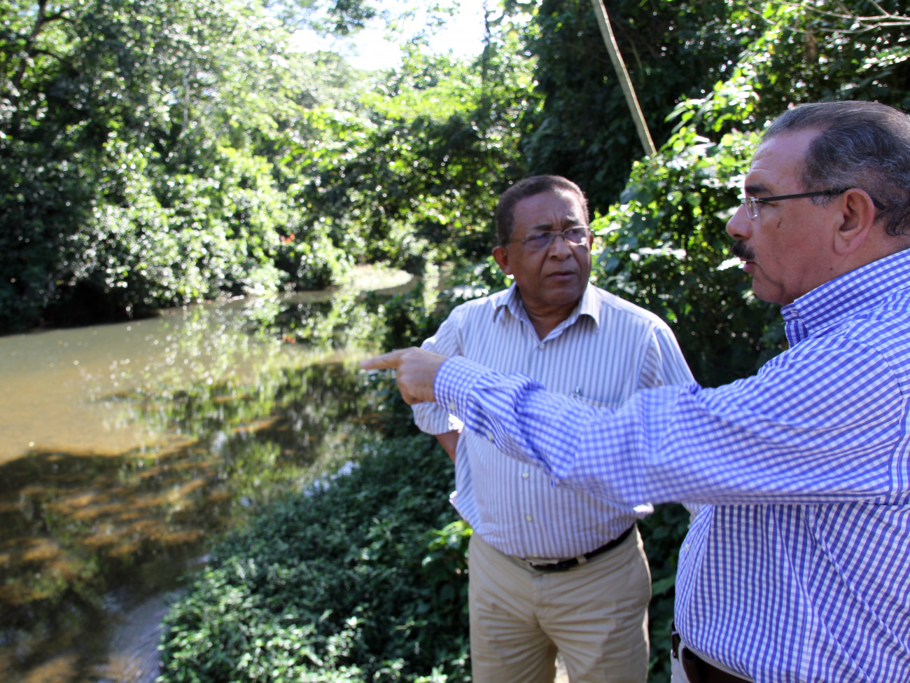 Después de concluir el encuentro con los cacaocultores, el presidente Medina se dirigió al dique La Gina en Miches para comprobar el estado en que estaba.