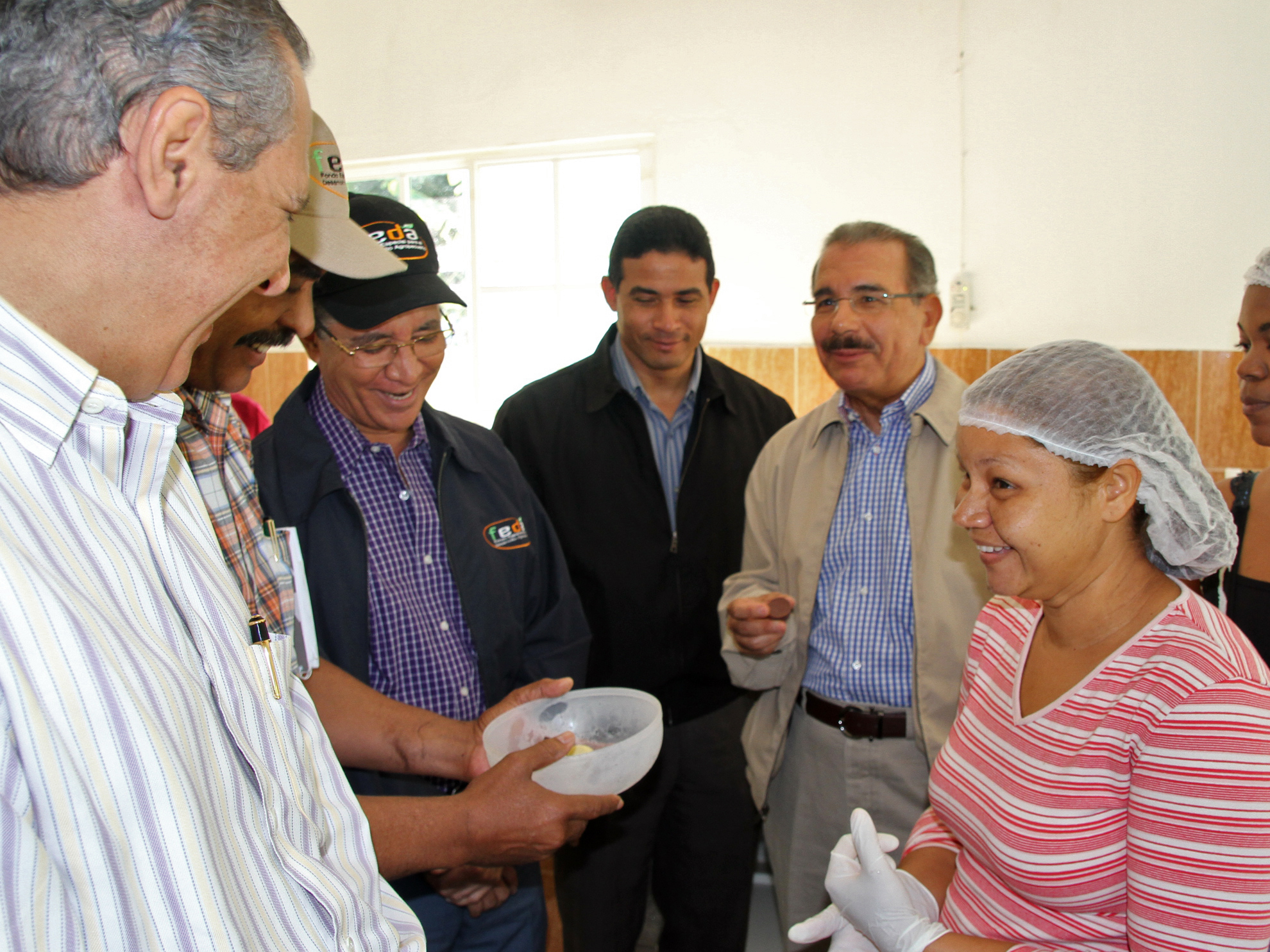 El presidente Medina degusta el chocolate producido por integrantes de la Asociación de Mujeres Esperanza Unida en Vicentillo durante su Visita sorpresa a la zona.