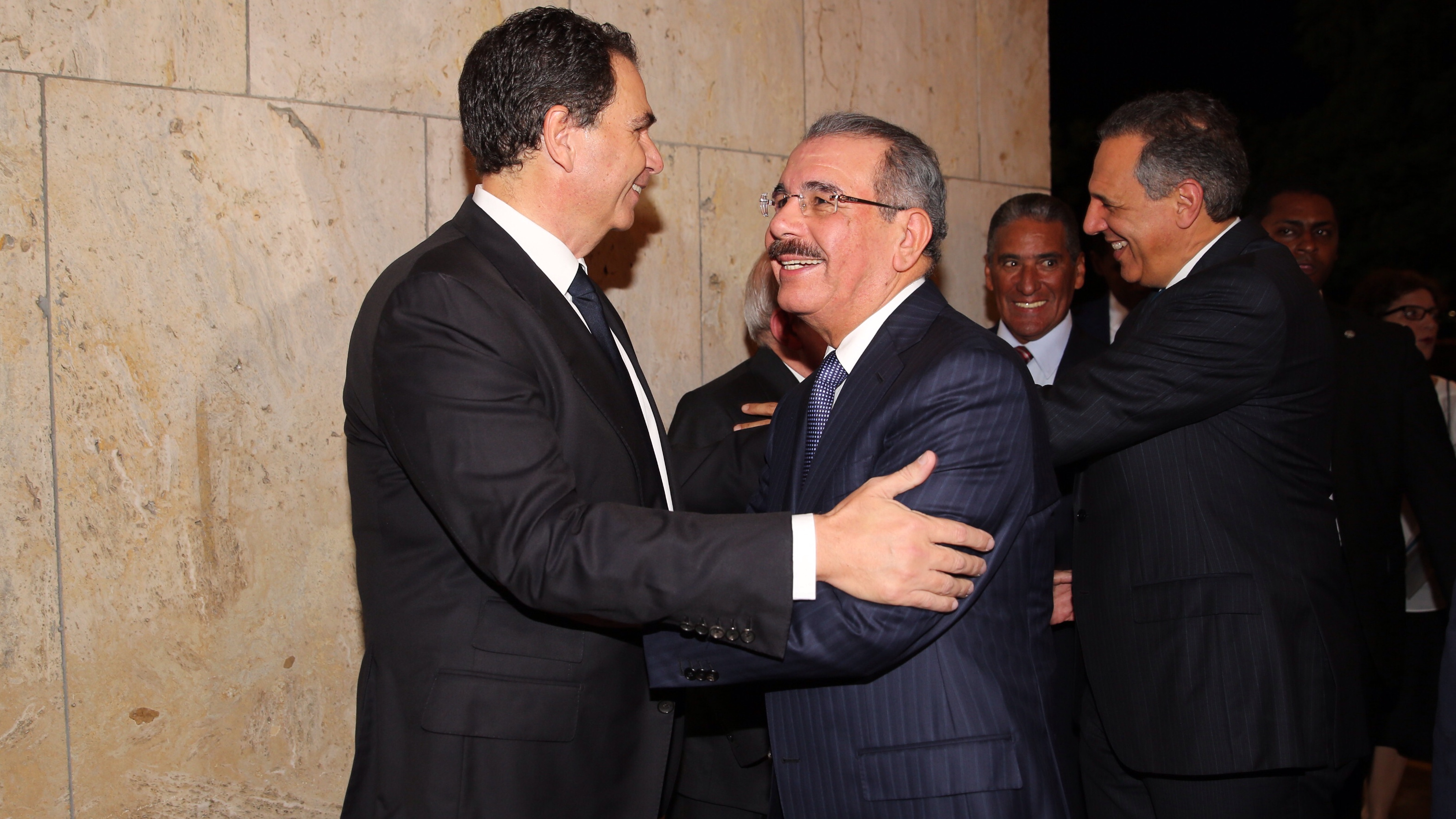 El presidente Danilo Medina es recibido por José Miguel González Cuadra y ejecutivos de CCN, a su llegada al acto.
