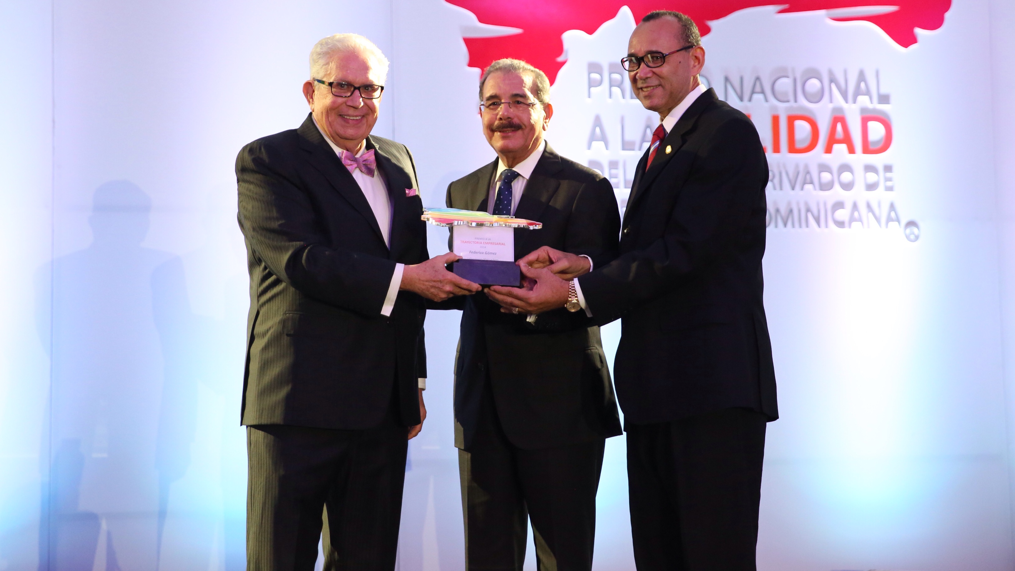 El presidente Danilo Medina entrega el Premio a la Trayectoria a Federico Gómez, presidente laboratorios Magnachen.