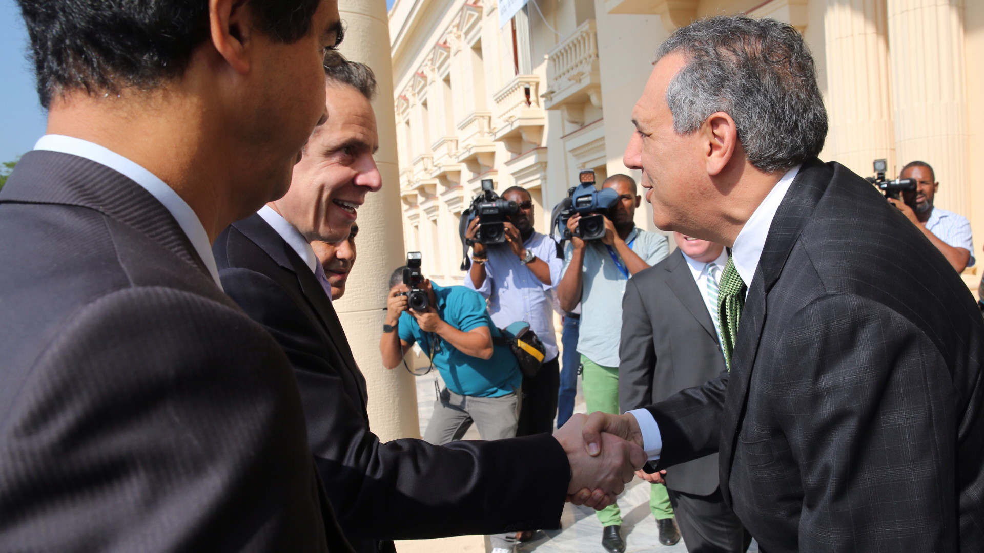 José Ramón Peralta, ministro Administrativo de la Presidencia, recibe al gobernador del Estado de Nueva York Andrew Cuomo y comitiva,, a su llegada al Palacio Nacional.