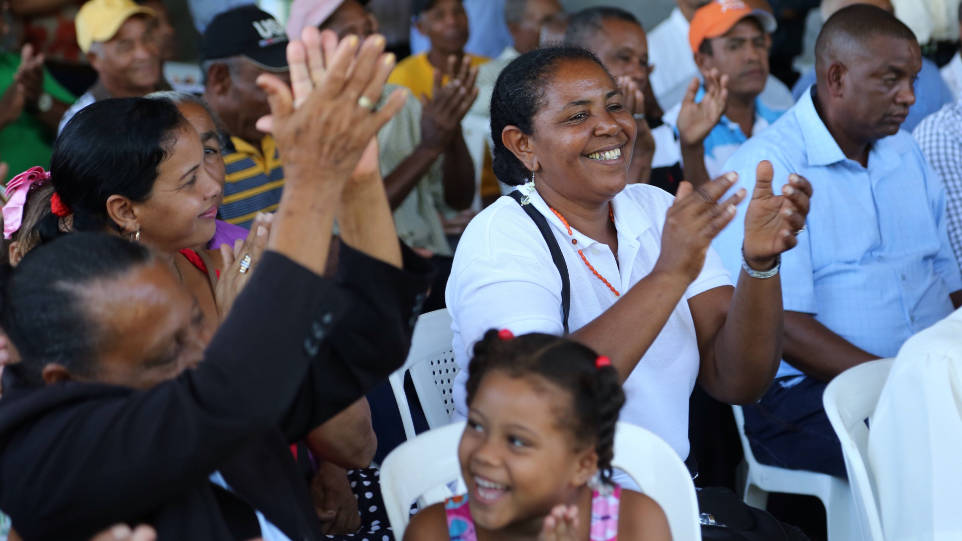 Participantes en el encuentro del presidente Medina con arroceros de Juma, provincia Monseñor Nouel, durante su Visita sorpresa de este domingo.