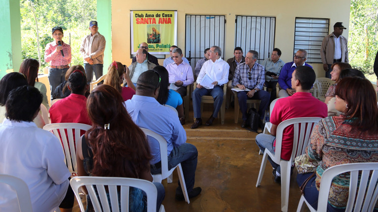 Presidente Danilo Medina y funcionarios acompañantes, durante encuentro con productoras de conejos y cilantro de la comunidad de Peñaló, agrupadas en el Club de Amas de Casa Santa Ana. Foto: Luis Ruiz Tito/Presidencia República Dominicana Nota de prensa: presidencia.gob.do/noticias/danilo-productores-aprovechen...