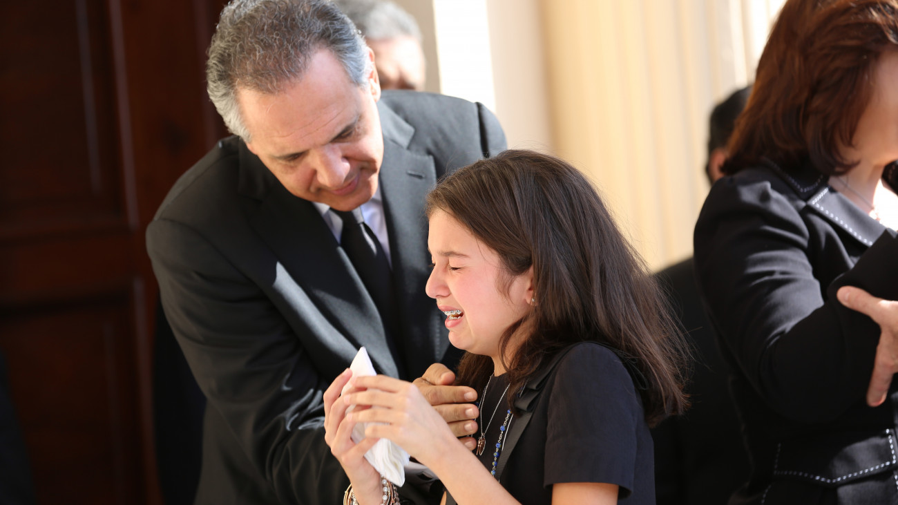 El ministro Administrativo de la Presidencia, José Ramón Peralta, consuela a una de las nietas de don Carlos Morales Troncoso.