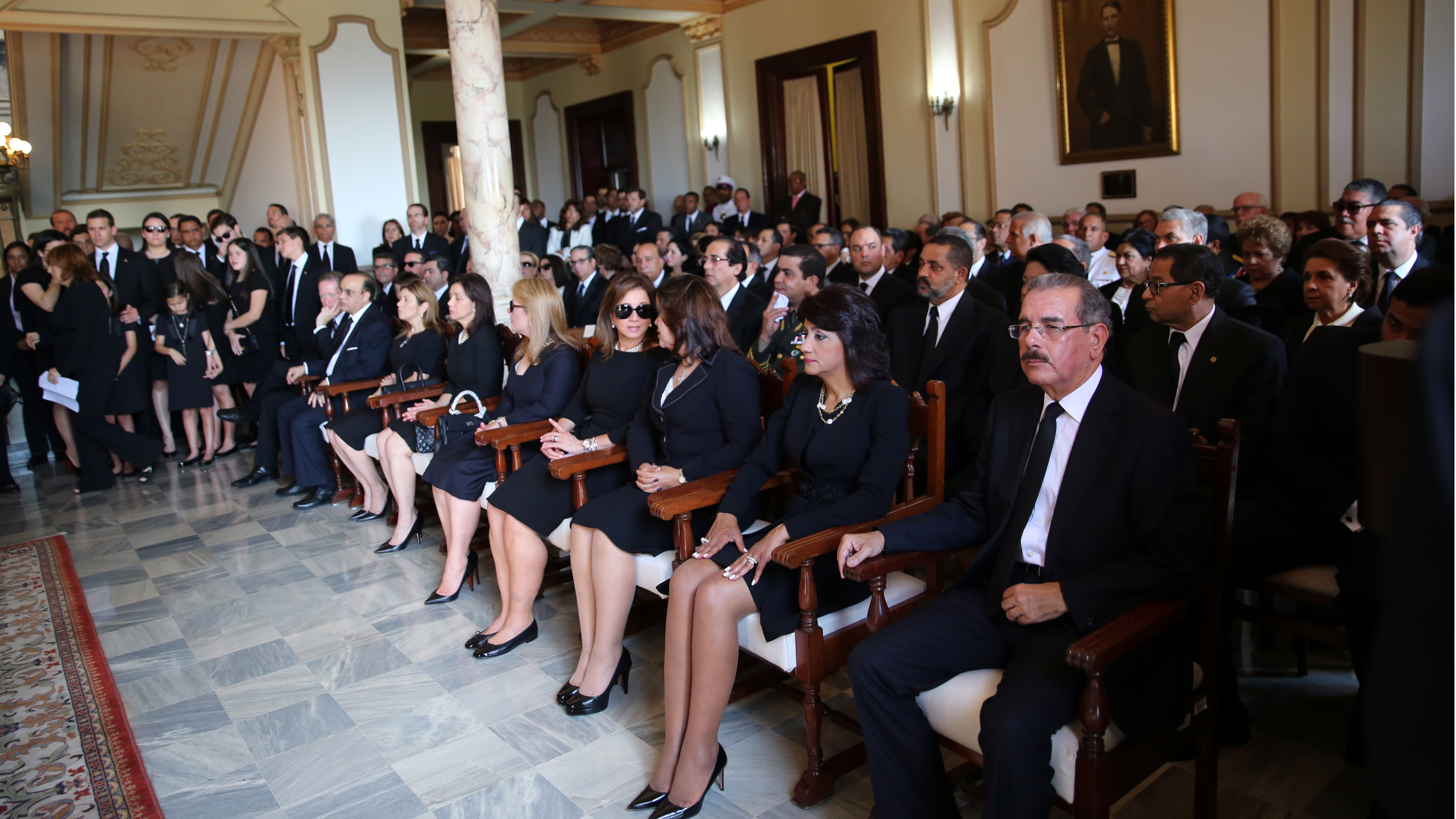El presidente Danilo Medina, la primera dama Cándida montilla de Medina, la vicepresidenta Margarita Cedeño de Fernández, familiares de don Carlos Morales Troncoso, funcionarios, diplomáticos y personalidades, durante los Honores de Estado, realizados en el Palacio Nacional.
