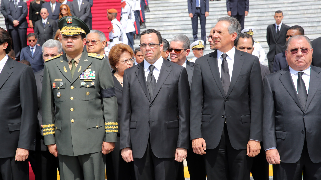 Los ministros de Defensa, Teniente General (ERD) Máximo William Muñóz Delgado; de Relaciones Exteriores, Andrés Navarro; Administrativo de la Presidencia, José Ramón Peralta, y de Interior y Policía, José Ramón Fadul, durante los Honores de Estado de don Carlos Morales Troncoso, realizados en el Palacio Nacional.