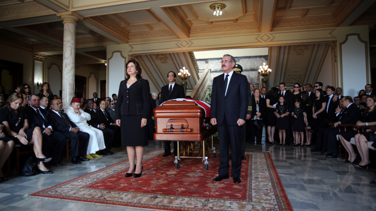 El presidente Danilo Medina, la vicepresidenta Margarita Cedeño de Fernández, el ministro de la Presidencia, Gustavo Montalvo; y autoridades militares realizaron la Guardia de Honor ante el féretro con los restos de don Carlos Morales Troncoso.