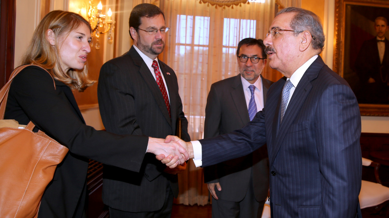 El presidente Danilo Medina recibió a Luis E. Arreaga y su comitiva en su despacho del Palacio Nacional.