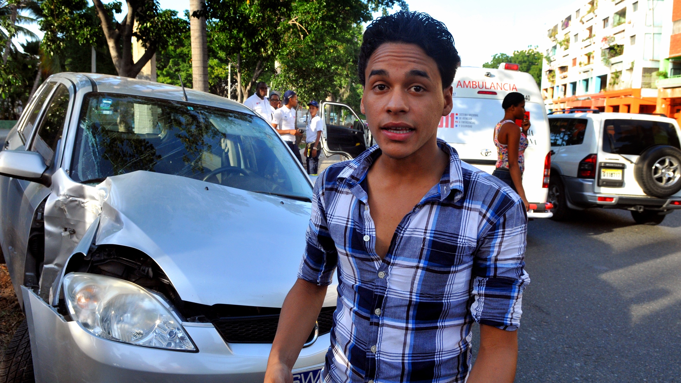El conductor Daniel Luis Pereira narra que perdió el control del vehículo luego de evitar atropellar a un transeúnte y “aparecérsele” un charco de agua, se accidentó.