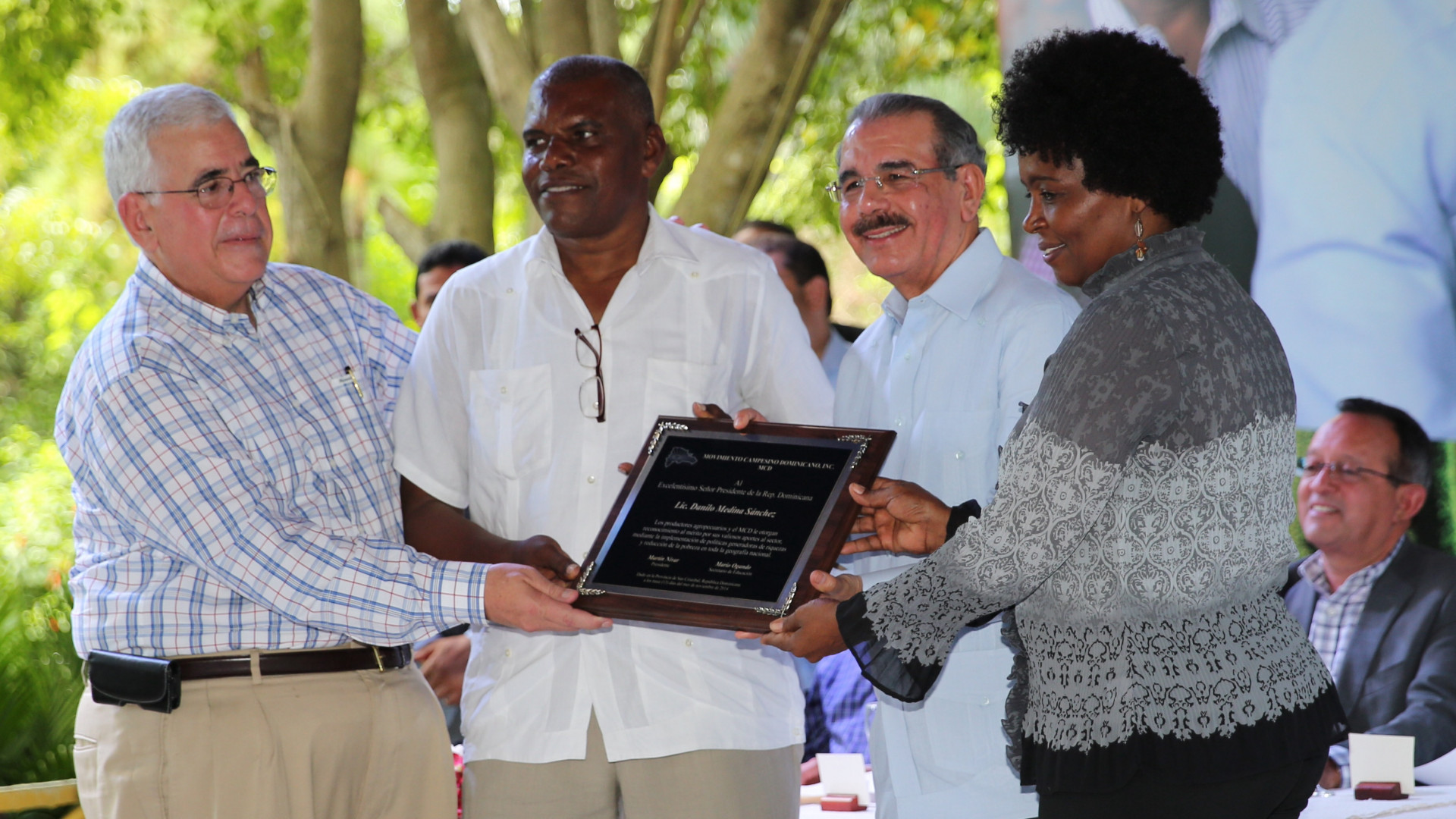 El Movimiento Campesino Dominicano (MCD), y productores agropecuarios, también otorgaron un reconocimiento al Mandatario por el mérito de sus valiosos aportes al sector.