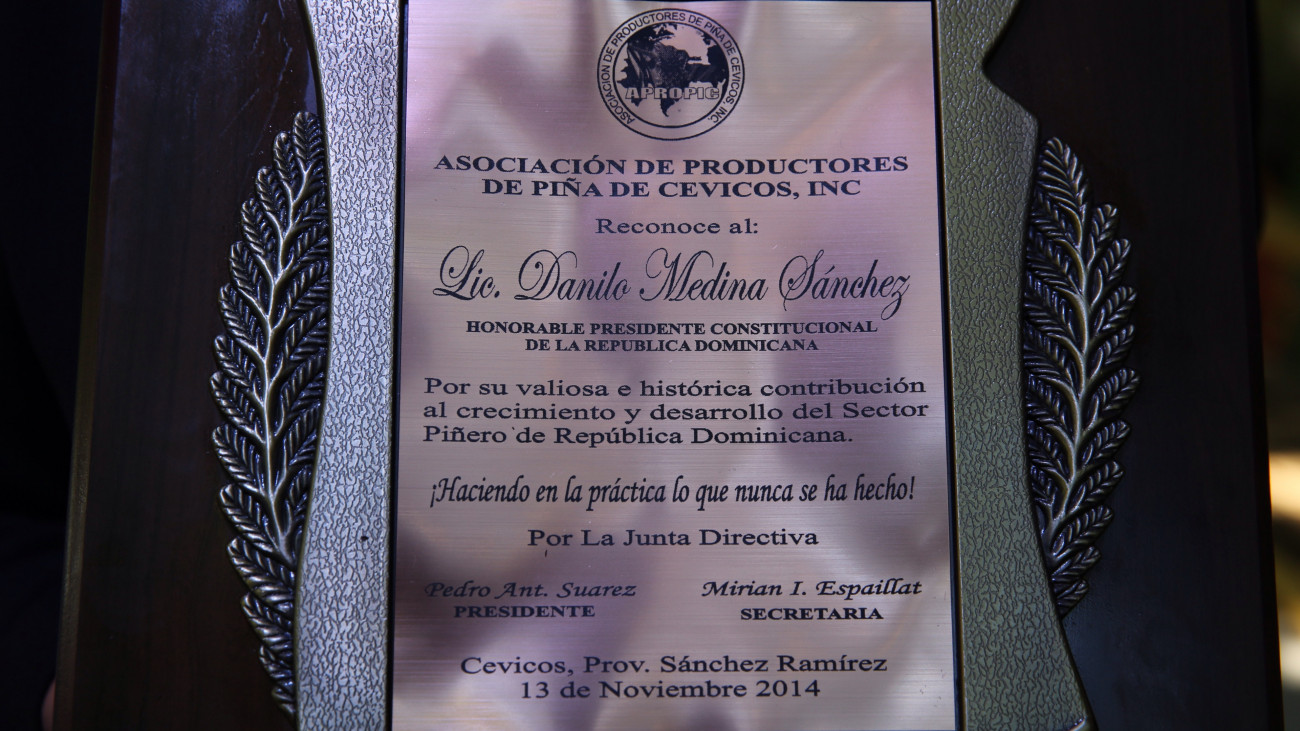 Asociaciones de productores de piña de Cevicos, Inc., reconocieron al Presidente Danilo Medina, por su valiosa e histórica contribución al crecimiento y desarrollo del Sector Piñero de República Dominicana.