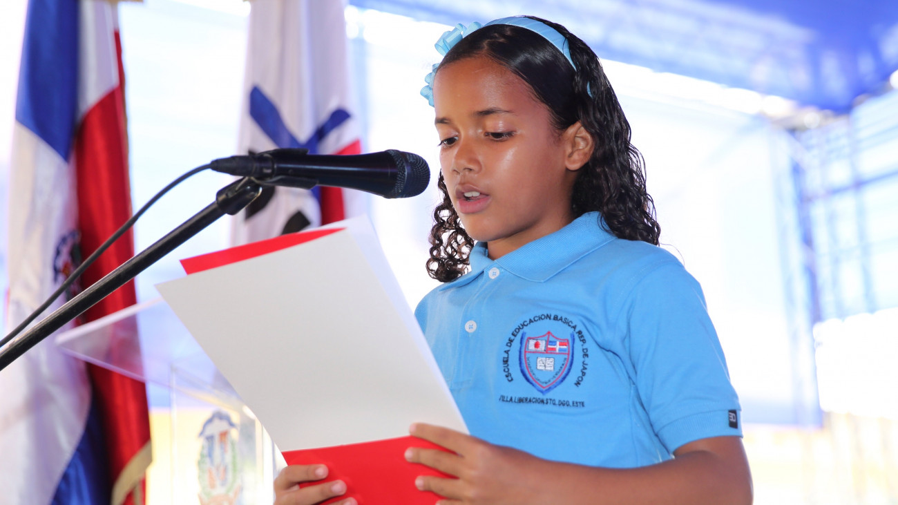 La estudiante de quinto grado de básica, Martha Altagracia Ramírez, habló en representación de sus compañeros.