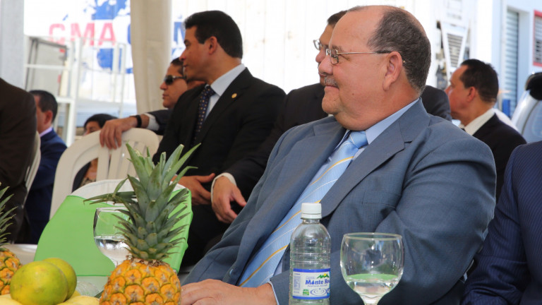 Personalidades presentes en el acto de inauguración de la empresa, encabezado por el presidente Medina.