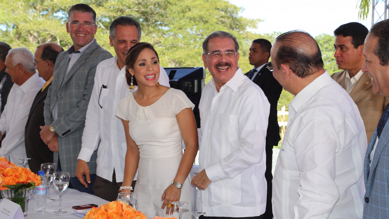 Presidente Danilo Medina al encabezar mesa principal junto a Ángel Rondón Rijo, presidente de Hacienda Los Ángeles; Angelina Rondón, gerente general de Agroindustrial Los Ángeles; ejecutivos de la empresa y personalidades invitadas.