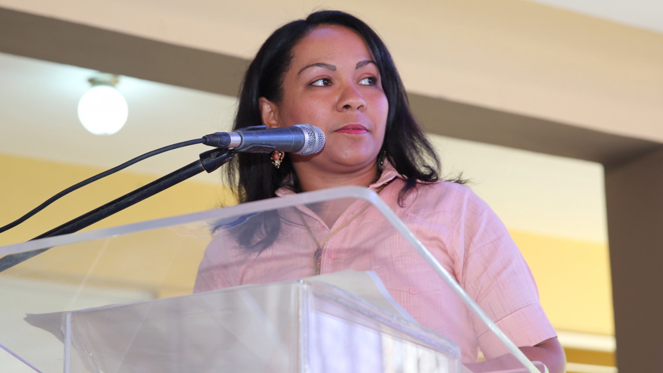 La directora del Politécnico Tamboril, Andrea Quezada, expresó las palabras de bienvenida al acto.