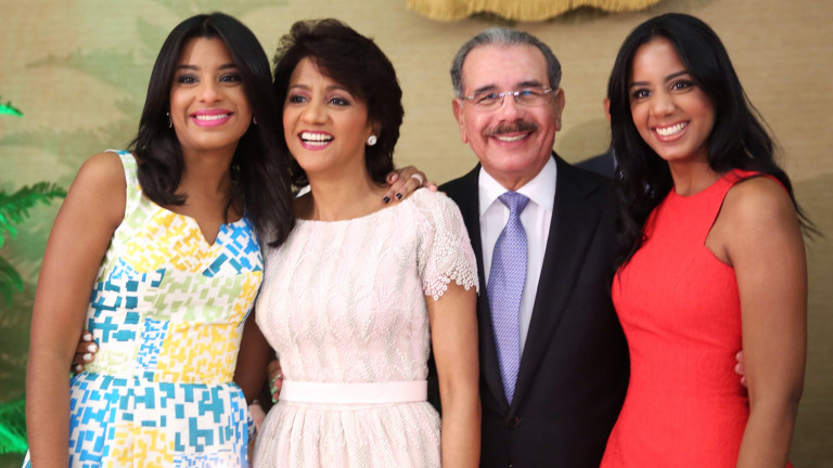 El presidente Danilo Medina, Cándida Montilla y sus hijas Vanessa y Ana Paula.