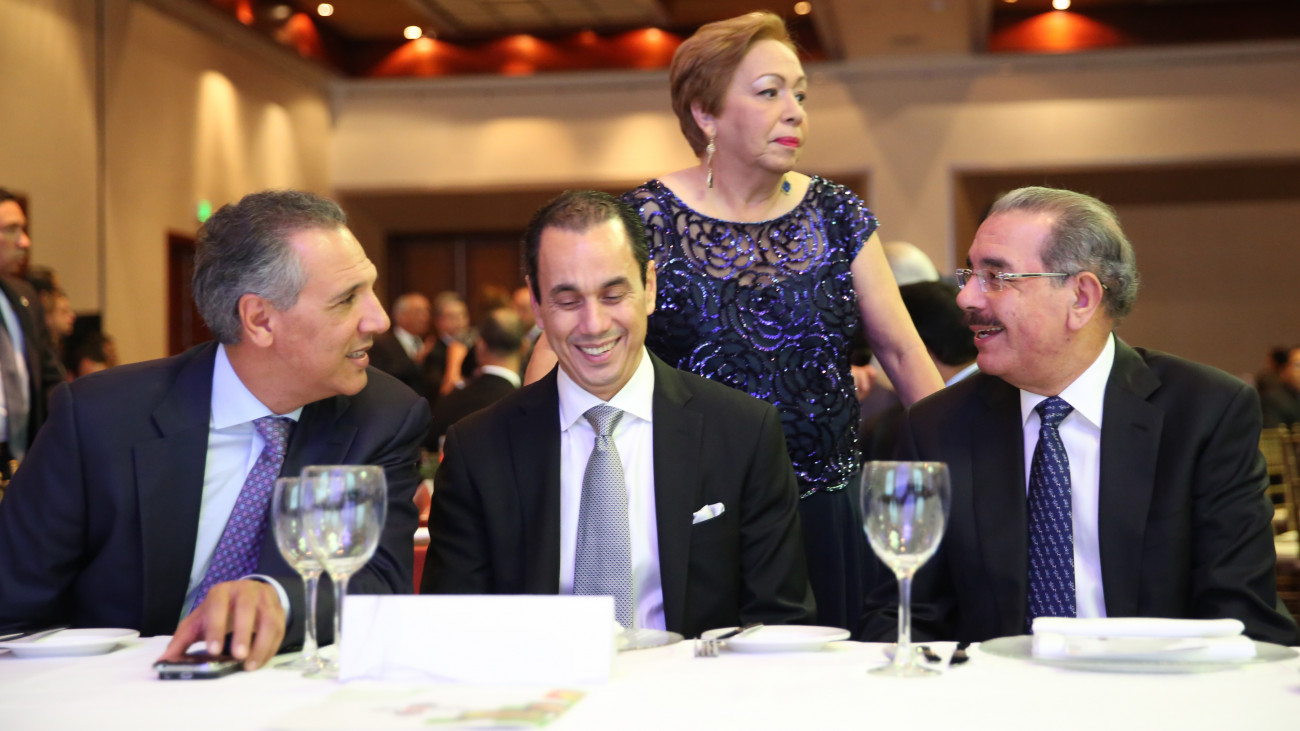 El mandatario Danilo Medina comparte con el ministro Administrativo de la Presidencia, José Ramón Peralta; y Sadala Khoury, presidente de ADOEXPO.