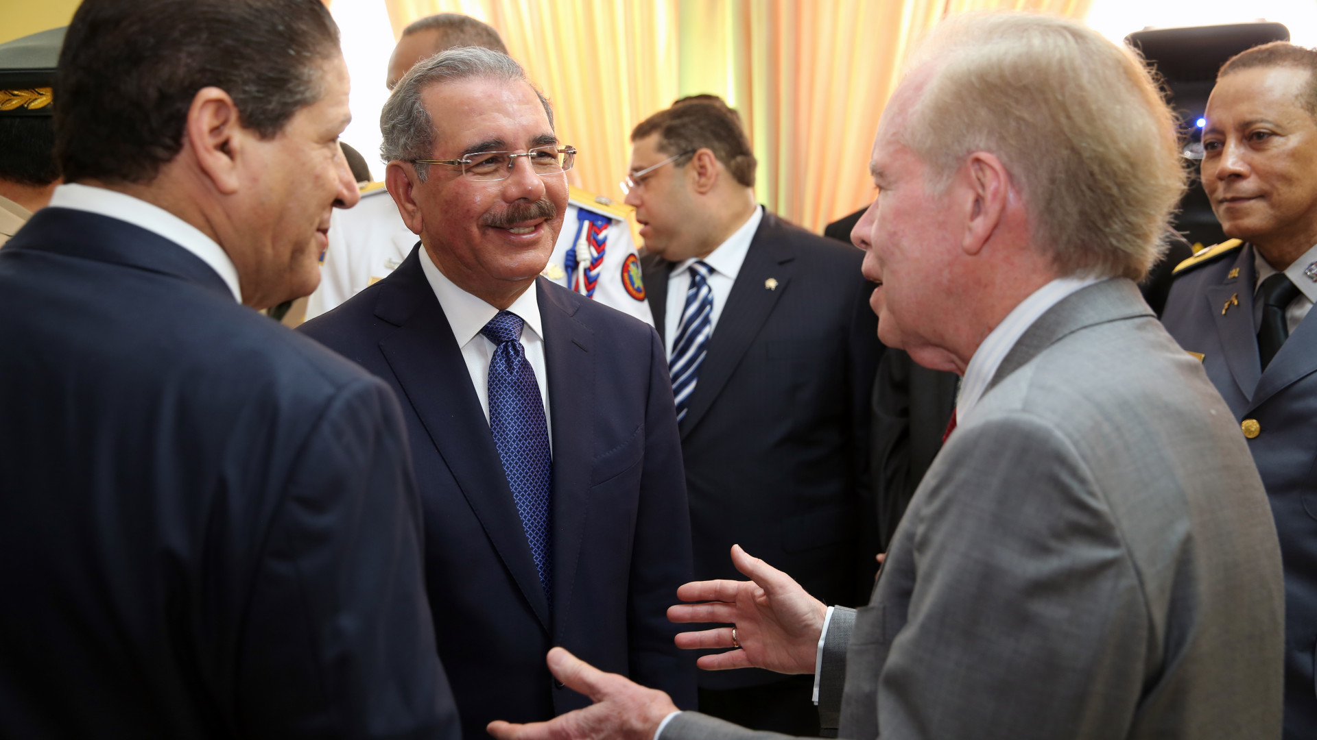 El presidente Danilo Medina conversa con José Luis Corripio en la Academia Militar Batalla de Las Cerreras, donde encabezó la graduación de la LIII Promoción de Cadetes "María Trinidad Sánchez" del Ejército de la República Dominicana (ERD). Foto: Luis Ruiz Tito/Presidencia República Dominicana Nota de prensa: presidencia.gob.do/noticias/presidente-danilo-medina-enca...